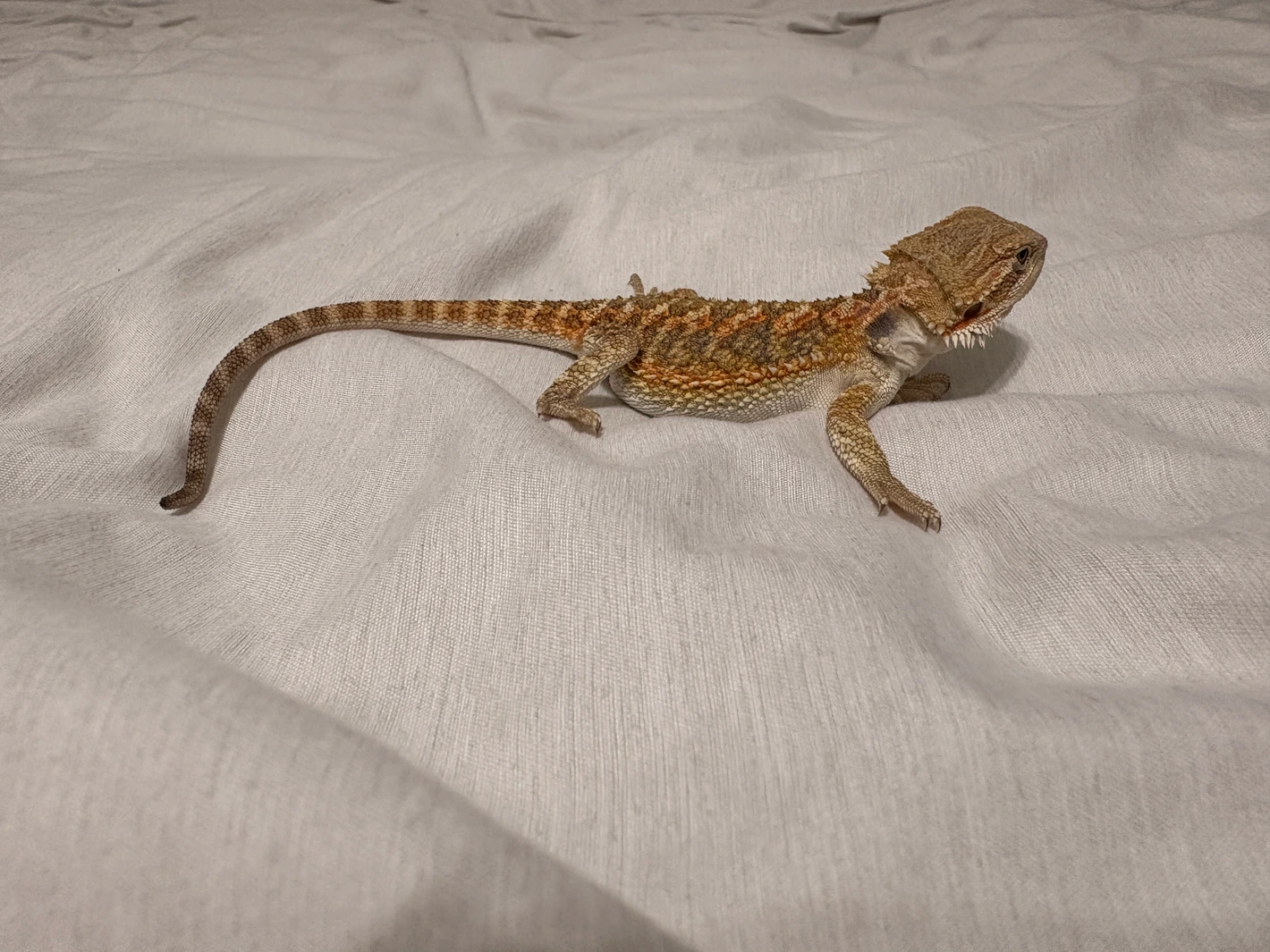 Loves Crickets, Mealworms, Hornworms, Lettuce, Cilantro, Bee Pollen/Greens Topper and Kale!